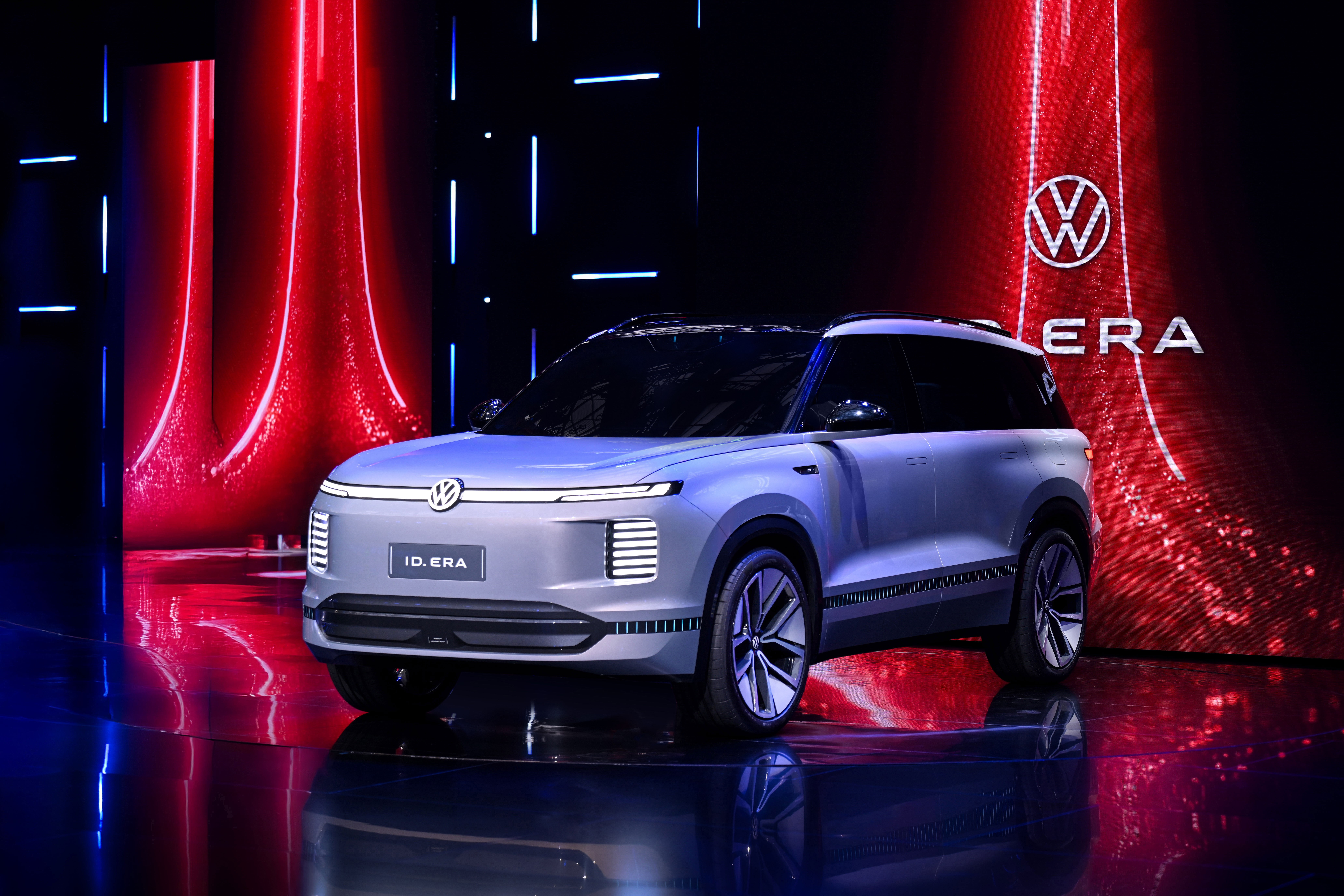 上汽大眾展臺中,一款魁梧、充滿力量感的概念車位居C位,它的名字叫做ID.ERA,是大眾品牌首款增程全尺寸SUV,“ERA”意為“時代”,你可以理解為:ID.ERA概念車是上汽大眾面向新合資時代的排頭兵。